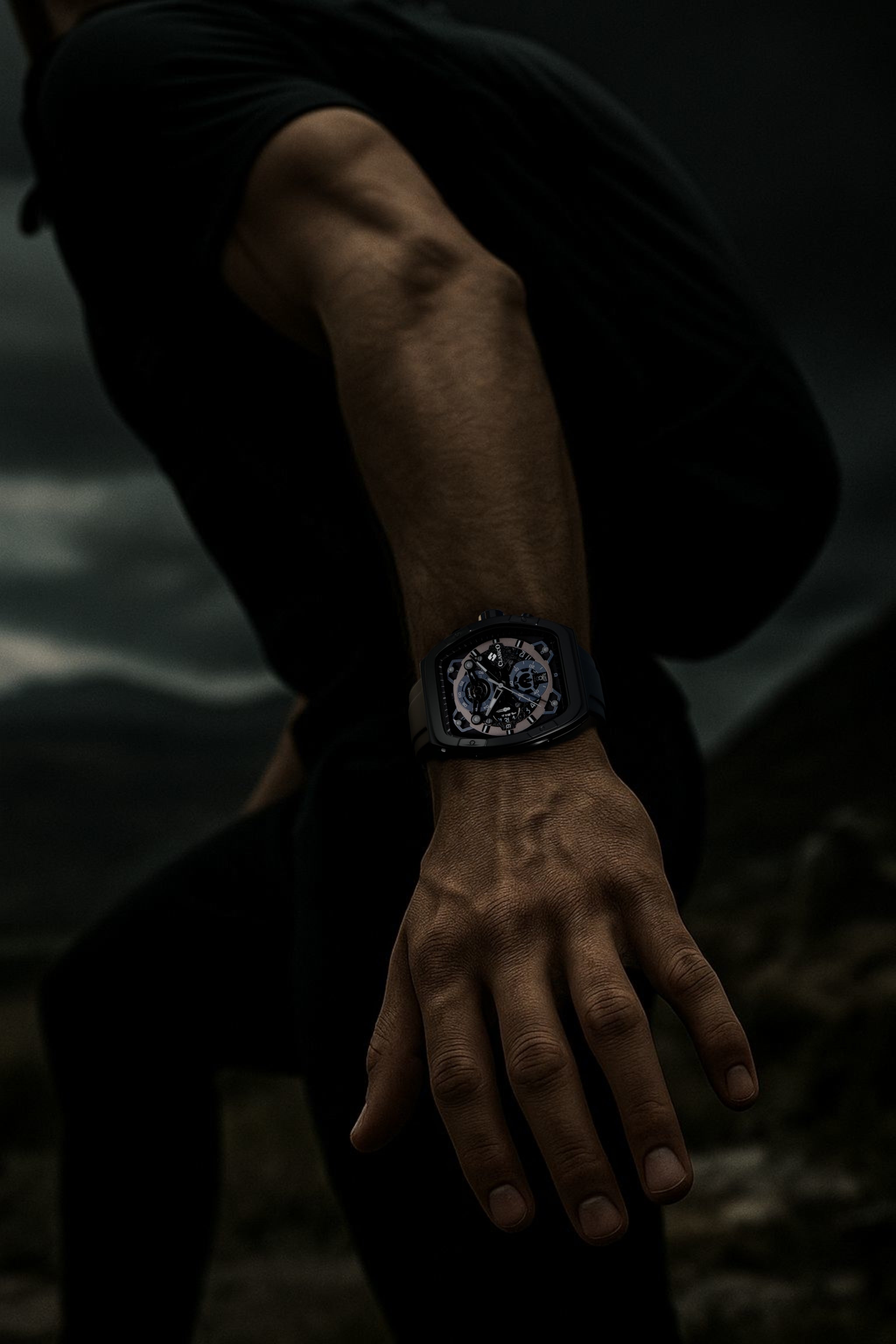 The rubber strap anchors the watch like armor, built for those who lead empires from the background — the tacticians, the architects, the unseen visionaries. There’s no flash here, only presence. Every line, every shadow, speaks of control, not chaos.